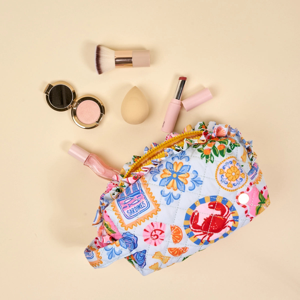 Keep your essentials organized with our Essentials Quilted Cosmetic Pouch! Crafted from soft quilted fabric, this pouch features a small handle for easy carrying and gold zipper hardware for a touch of elegance. The signature darling wipeable interior lining ensures that your items stay neat and easy to access. It's the perfect size for your everyday makeup routine, whether you're at home or on the go. Perfect size for your daily must-haves