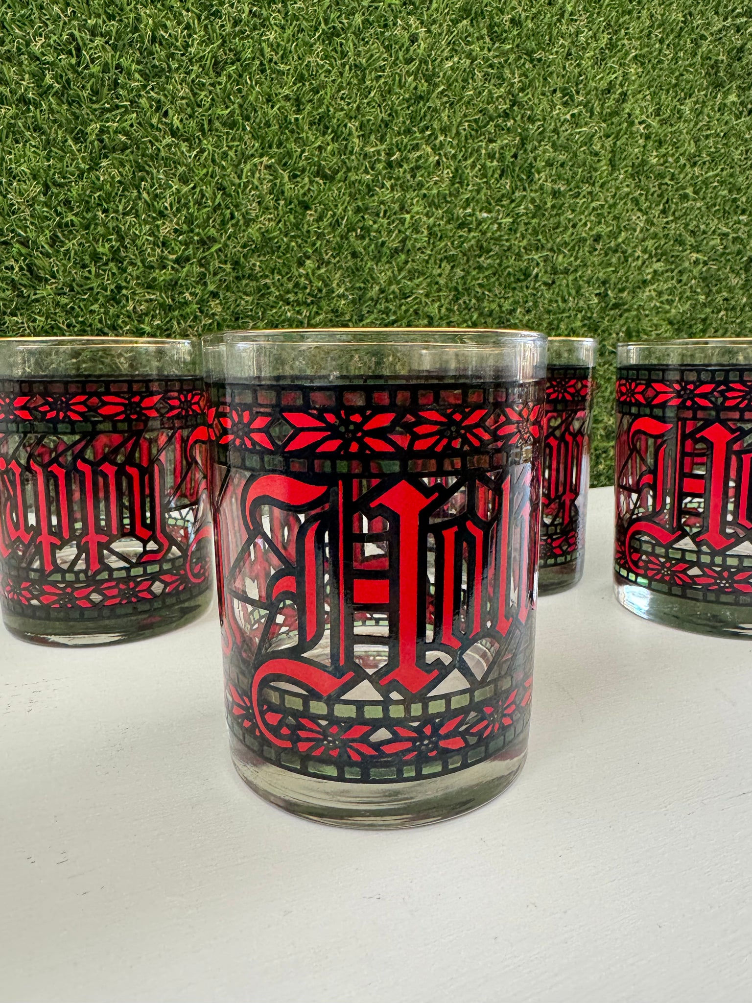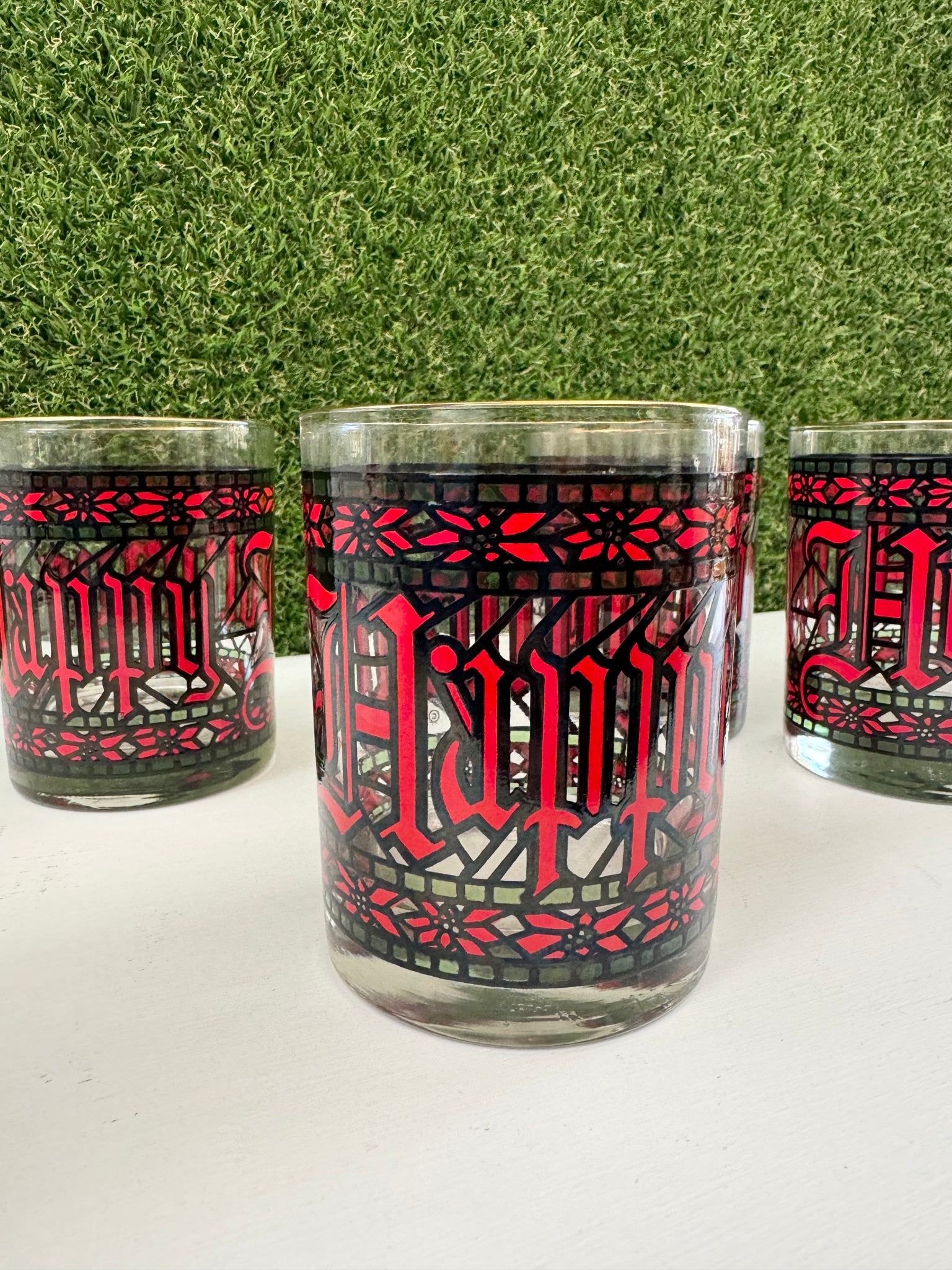 Vintage Happy Holiday barglasses. In good vintage condition. We are obsessed with these!