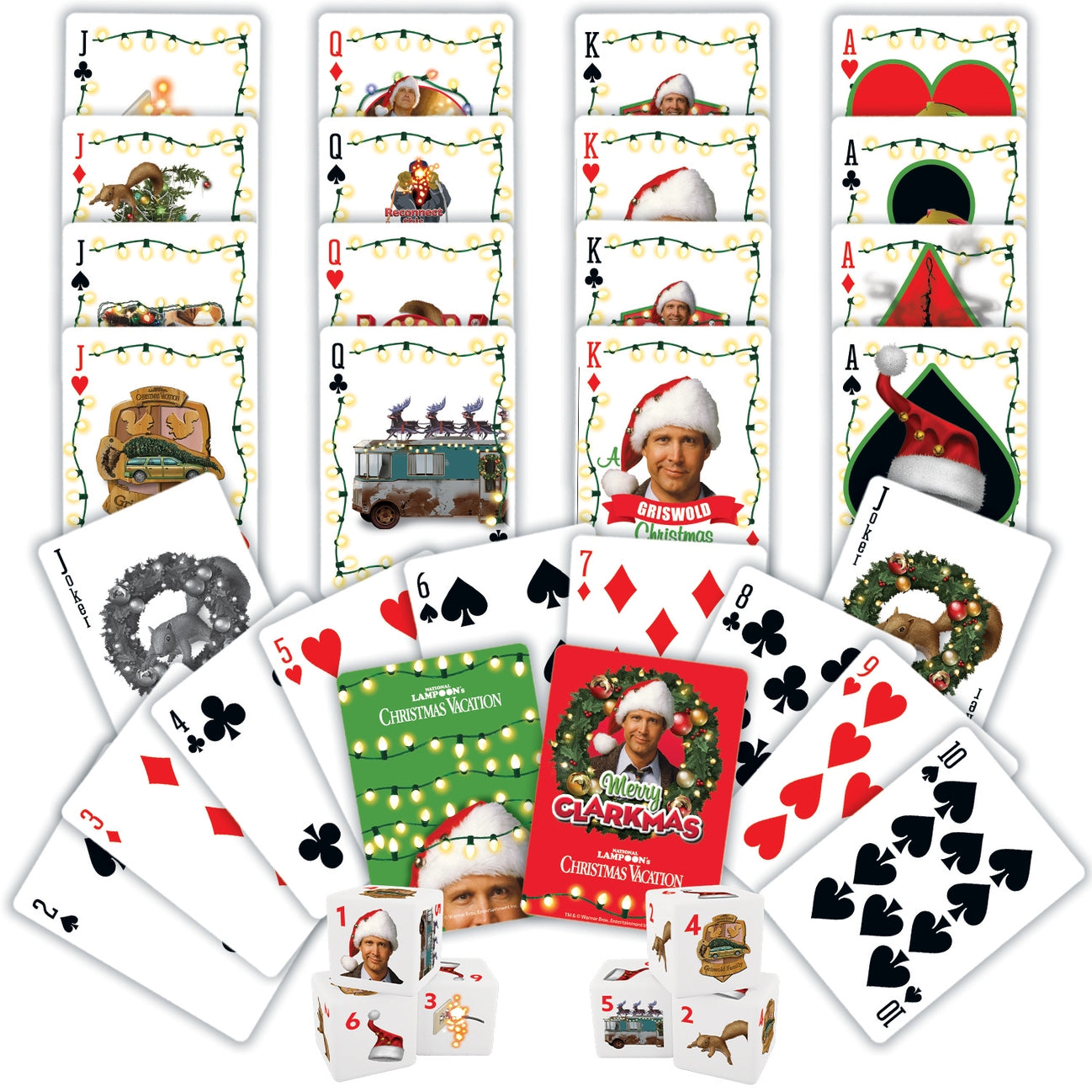 Celebrate the holiday season with a touch of humor and nostalgia with the National Lampoon’s Christmas Vacation 2-Pack Card and Dice Set. Inspired by the iconic holiday film, this festive set brings the Griswold family's memorable antics to your game nights and gatherings. The set offers two packs of playing cards, each with a distinct cardback illustration, and six dice all adorned with charming and iconic imagery from the film. Whether you’re battling for the highest score or simply enjoying a friendly game, this set adds a touch of festive fun to every play session. Celebrate the timeless humor and holiday mishaps of Clark Griswold’s quest for the perfect Christmas! Officially Licensed Warner Brothers product.