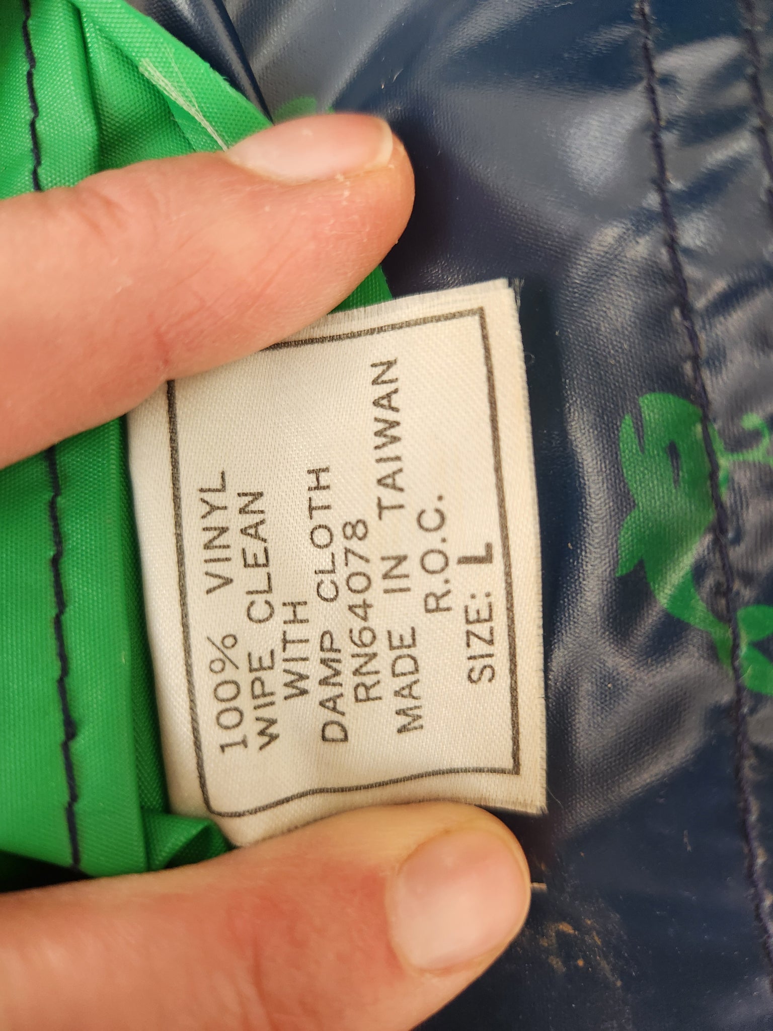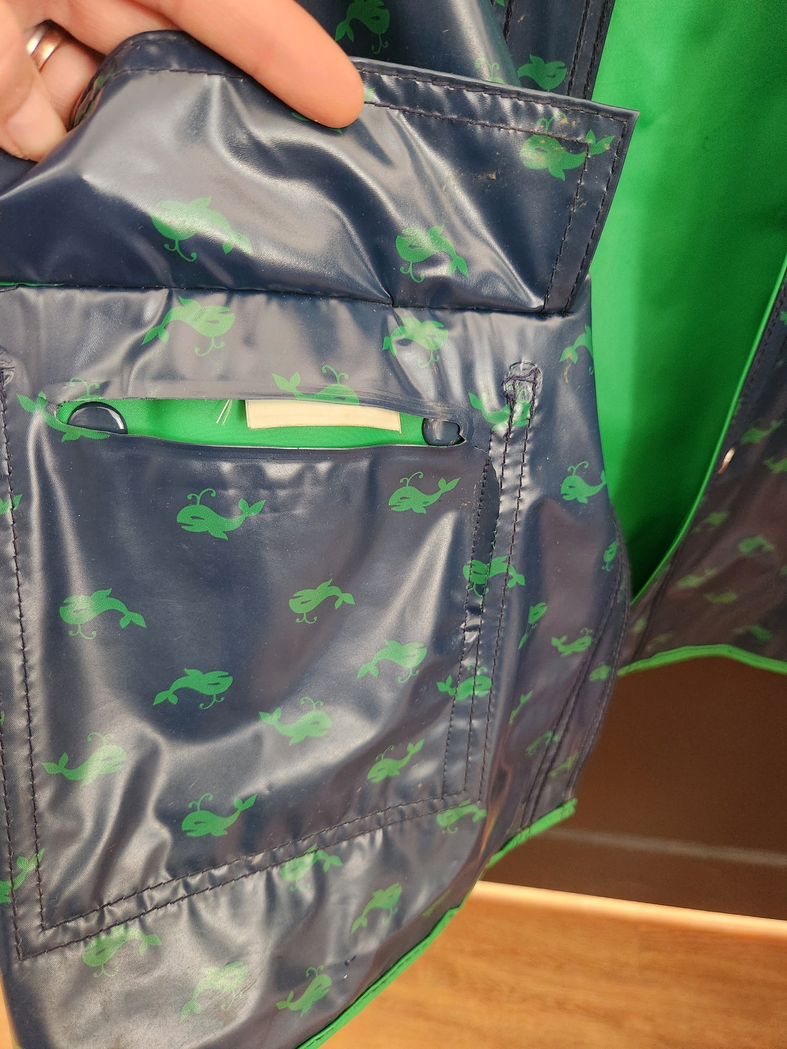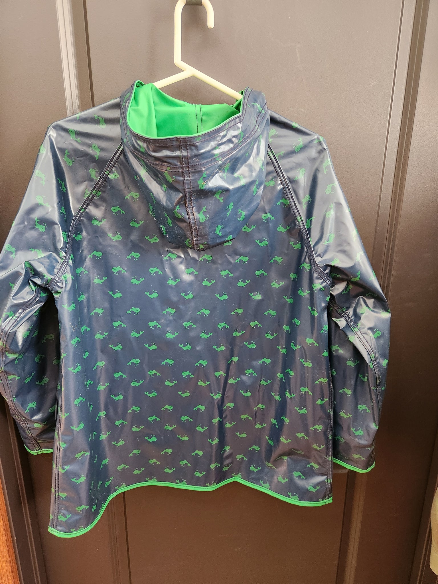 Vintage whale print navy and Kelly green reversible rain jacket. No brand name on tags. I’m thinking it’s from the 1990’s?