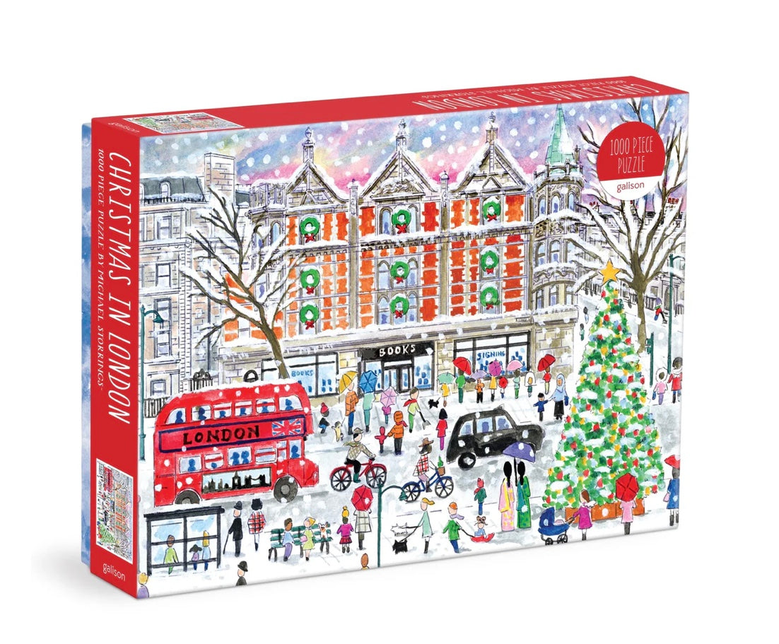 The Michael Storrings Christmas in London 1000 Piece Puzzle captures the holiday season around a London bookshop, perhaps rekindling the wonder found in a good book each day and through the Christmas season. Galison puzzles are packaged in matte-finish sturdy boxes, perfect for gifting, reuse, and storage.