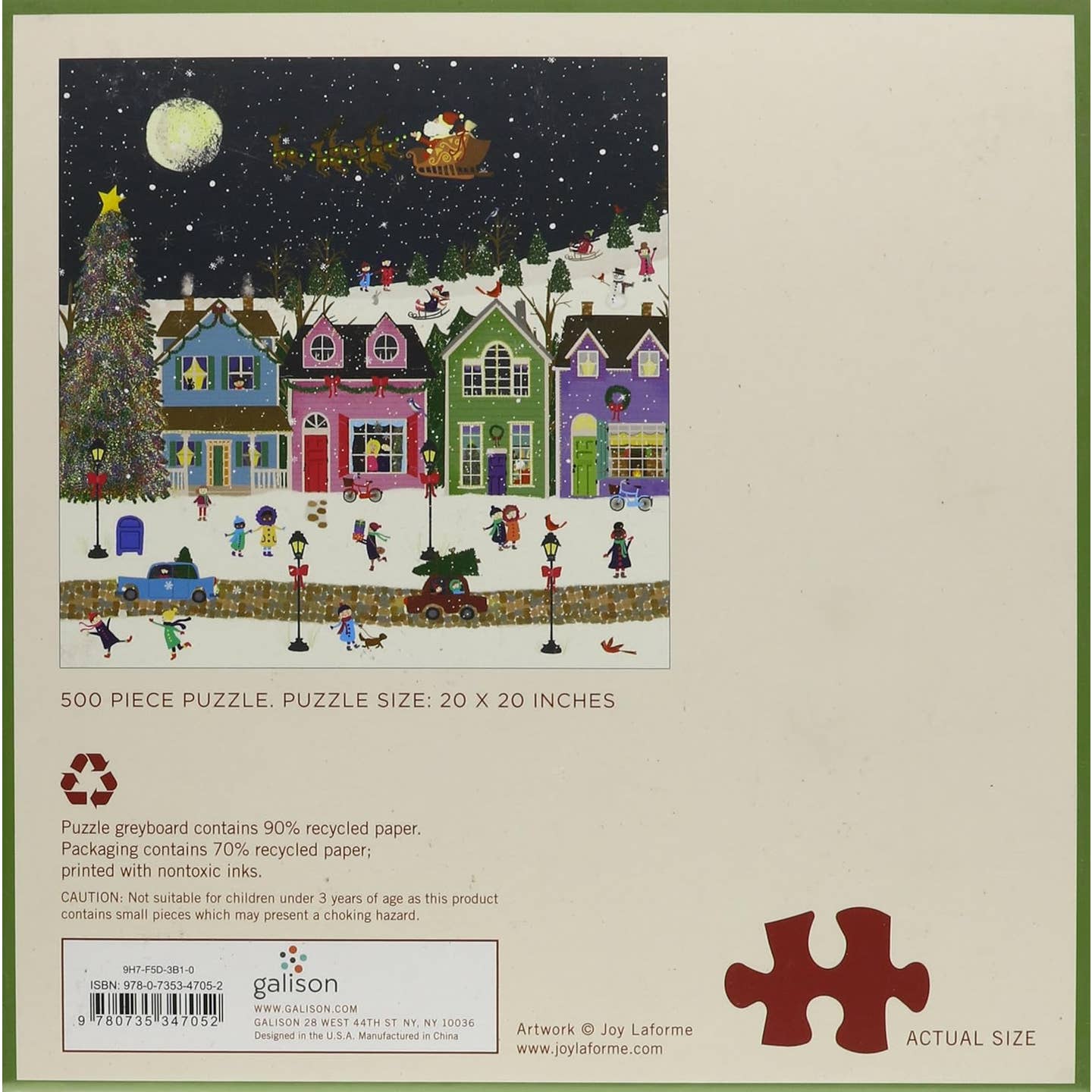 Piece together a picturesque, snow-covered Christmas town with this 500-piece puzzle from Galison. Featuring Santa, his reindeer, a towering Christmas tree, and plenty of happy townspeople, this puzzle is sure to summon holiday cheer.